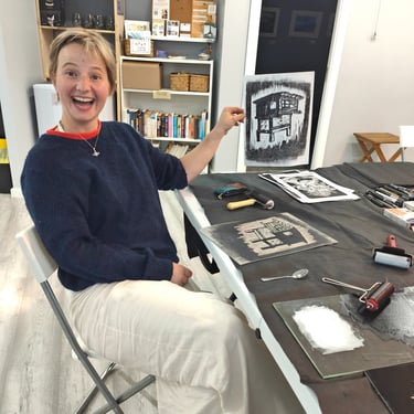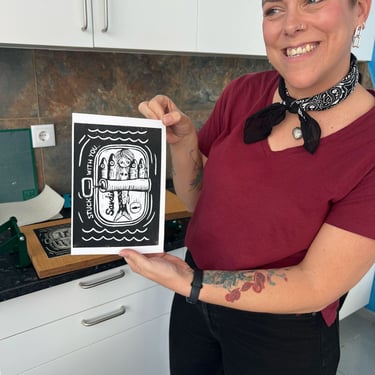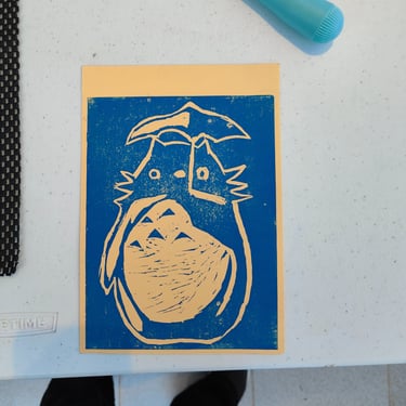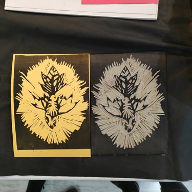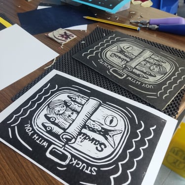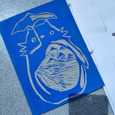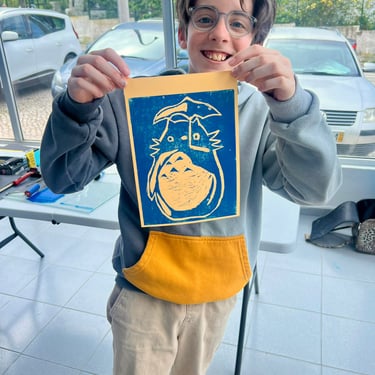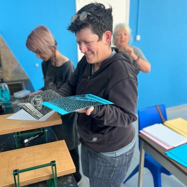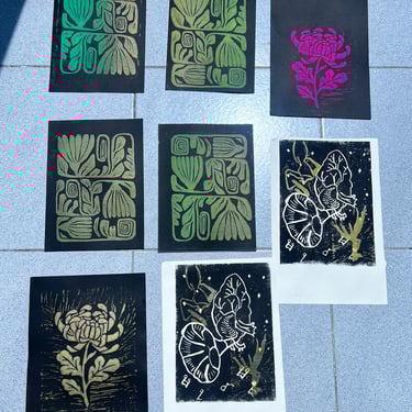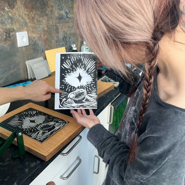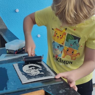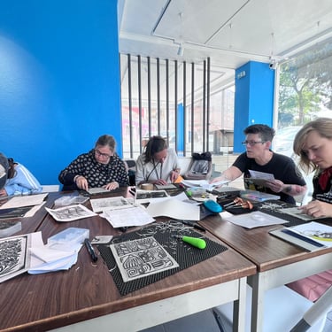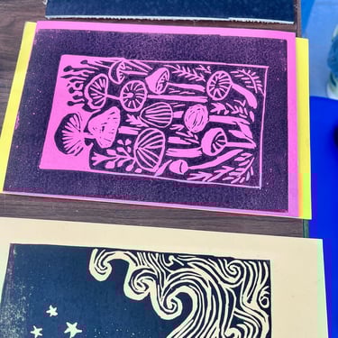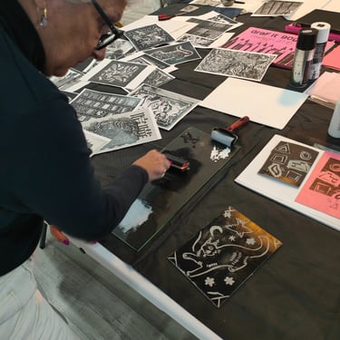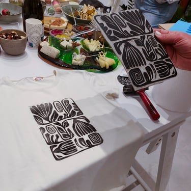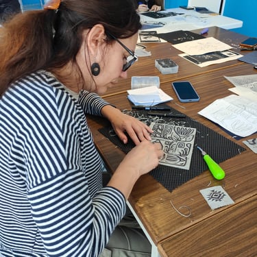 Linocutting is a printmaking technique where designs are carved into a sheet of linoleum, inked, and then pressed onto paper or fabric to create bold, textured prints.
