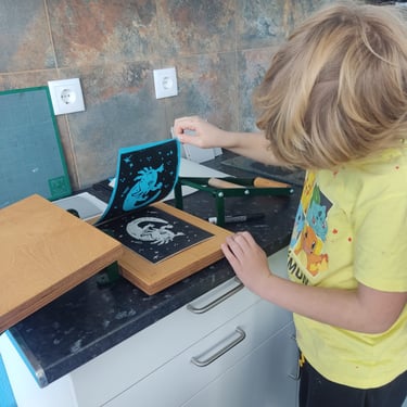 For adults, it’s a relaxing, almost meditative process that also challenges you to think in reverse, since your print comes out as a mirror image.